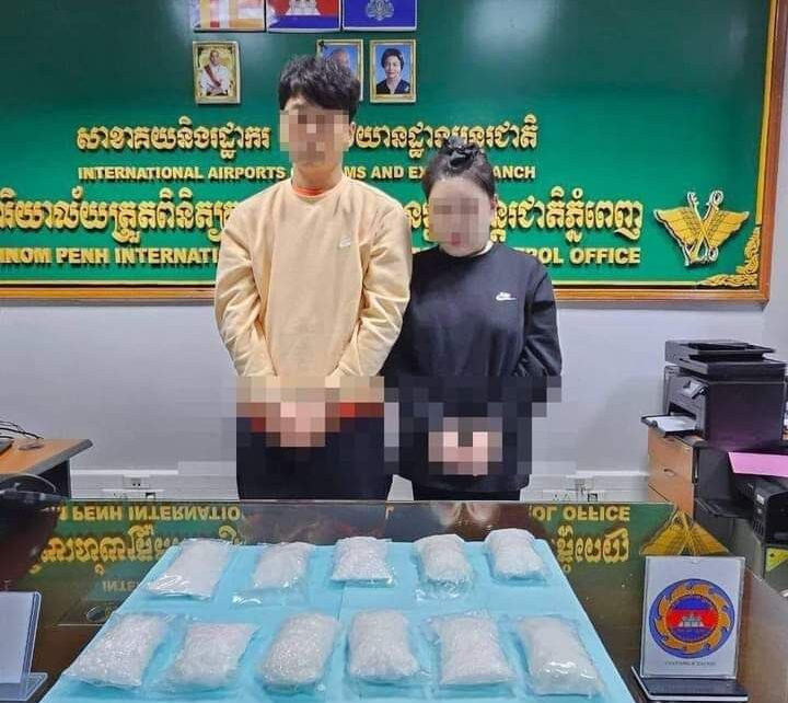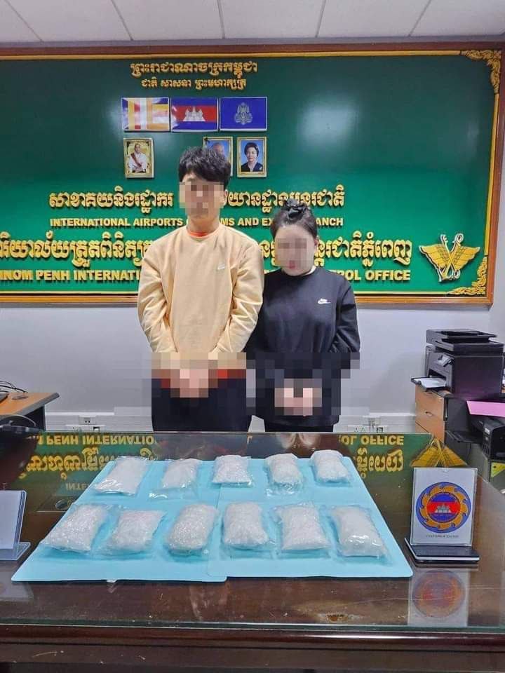 រាជធានីភ្នំពេញ៖ សមត្ថកិច្ចគយ និងរដ្ឋាករ ប្រចាំអាកាសយានដ្ឋានអន្តរជាតិភ្នំពេញ បានសហការជាមួយកម្លាំងជំនាញមន្ទីរប្រឆាំងគ្រឿងញៀន ដោយមានការសម្របសម្រួលពីឯកឧត្តម ច្រឹង ខ្មៅ ព្រះរាជអាជ្ញាអមសាលាដំបូងរាជធានីភ្នំពេញ ឃាត់ខ្លួនអ្នកដំណើរចំនួន ២នាក់ ប៉ុនប៉ងដឹកជញ្ជូនគ្រឿងញៀន តាមជើងយន្តហោះពីកម្ពុជាទៅកាន់ប្រទេសកូរ៉េខាងត្បូង។