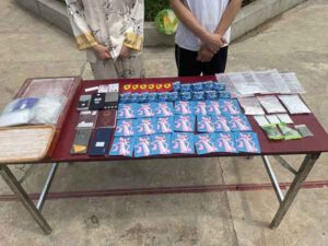 បន្ទាយមានជ័យ៖ ដោយទទួលបានព័ត៌មានពីសន្តិសុខថា មានករណីលក់គ្រឿងញៀននៅចំណុចកាស៊ីណូនាគទិព្ធ ស្ថិតក្នុងភូមិក្បាលស្ពាន១ សង្កាត់អូរជ្រៅ ក្រុងប៉ោយប៉ែត នៅវេលាម៉ោង០០និង៣០នាទី ថ្ងៃទី១៦ ខែកក្កដា ឆ្នាំ២០២៤ កម្លាំងមូលដ្ឋានមូលដ្ឋានកងរាជអាវុធហត្ថក្រុងប៉ោយប៉ែត ដឹកនាំដោយលោក វរសេនីយ៍ត្រី នួន នីណារ៉ូ មេបញ្ជាការមូលដ្ឋានកងរាជអាវុធហត្ថក្រុង បានចុះដល់ចំណុចខាងលើ ហើយបានឃាត់ខ្លួនជនសង្ស័យចំនួន០២នាក់ ១-ឈ្មោះ ធី អ៊ុកលឺម ហៅ រិ ភេទស្រី អាយុ២៤ឆ្នាំ ជនជាតិវៀតណាម មុខរបរអ្នកបកប្រែ បច្ចុប្បន្នស្នាក់នៅភូមិគីឡូម៉ែត្រលេខ៤ សង្កាត់ផ្សារកណ្តាល ក្រុងប៉ោយប៉ែត(ជួញដូរ និងប្រើប្រាស់)។ ២-ឈ្មោះ ឈិន ជូជូ ភេទប្រុស អាយុ២៩ឆ្នាំ ជនជាតិចិន មុខរបរមិនពិតប្រាកដ បច្ចុប្បន្នស្នាក់នៅភូមិគីឡូម៉ែត្រលេខ៤ សង្កាត់ផ្សារកណ្តាល ក្រុងប៉ោយប៉ែត(ជួញដូរ រក្សាទុក និងប្រើប្រាស់)។